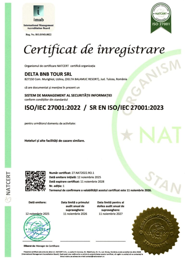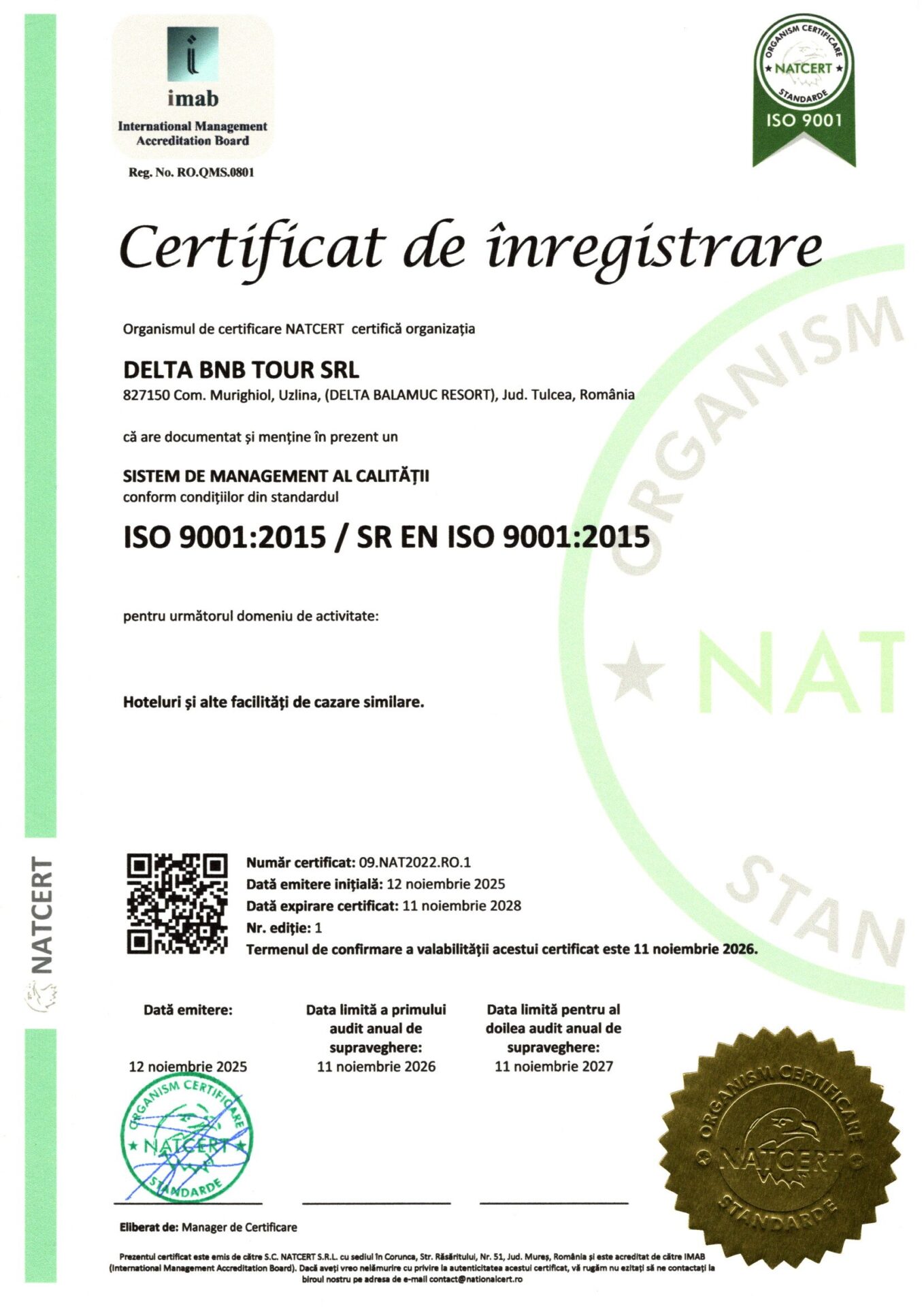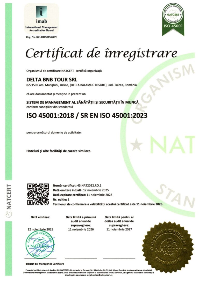 La Balamuc Resort, fiecare detaliu respectă cele mai înalte standarde ISO — pentru că luxul începe cu responsabilitatea.